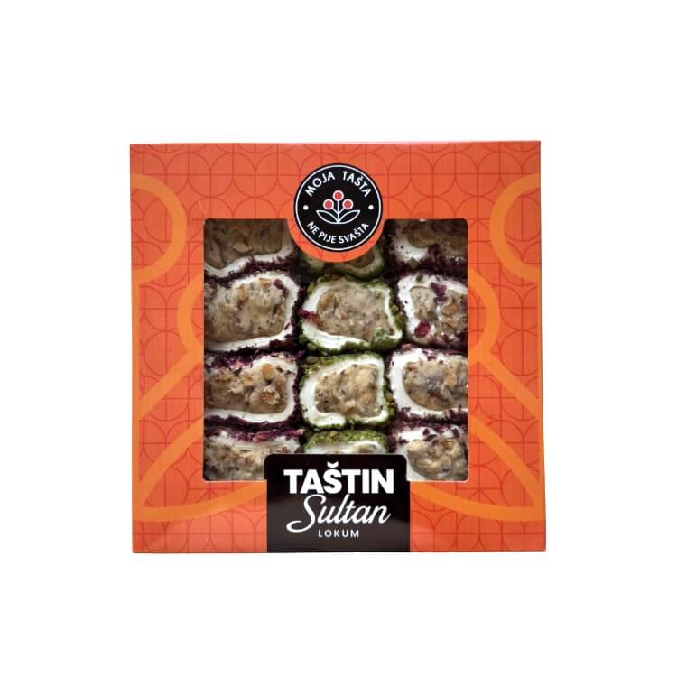 Uživajte u luksuznom ukusu Sultan lokuma s pistaćima i laticama ruže – delikatna poslastica koja spaja hrskave pistaće i mirisne latice ruže u savršenom spoju tradicije i sofisticiranosti. Idealno za sladokusce koji traže autentičan i raskošan desert!